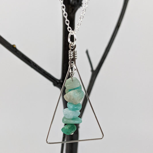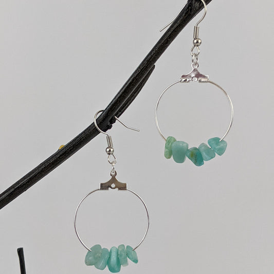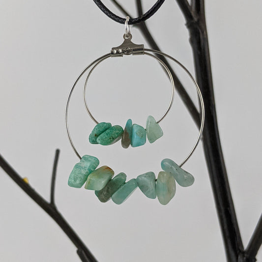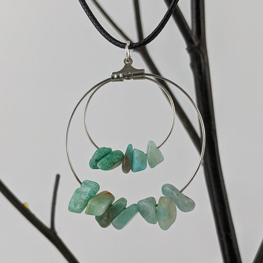 Amazonite Double Circle Pendant and Circle Hoop Earrings Set