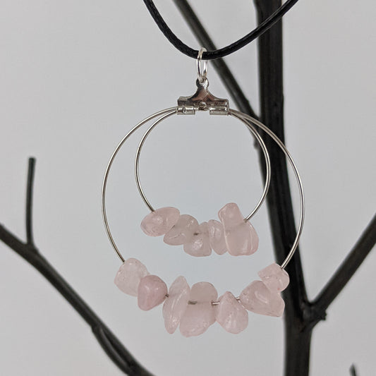 Rose Quartz Double Circle Pendant Necklace