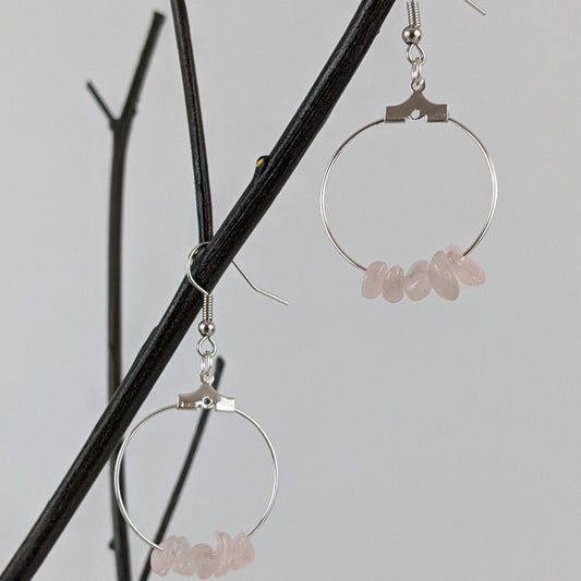 Rose Quartz Double Circle Pendant and Circle Hoop Earrings Set