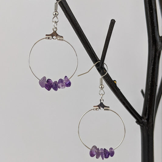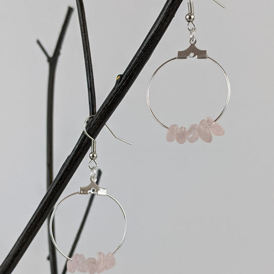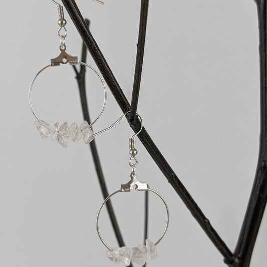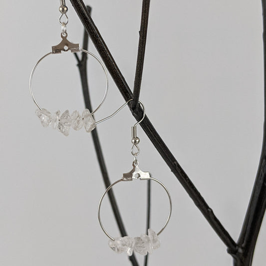Crystal Quartz Double Circle Pendant and Circle Hoop Earrings Set