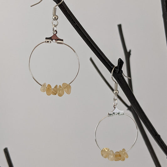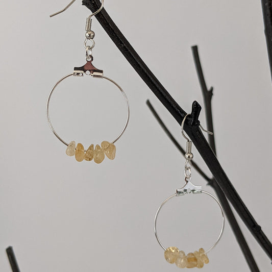 Citrine Double Circle Pendant and Circle Hoop Earrings Set