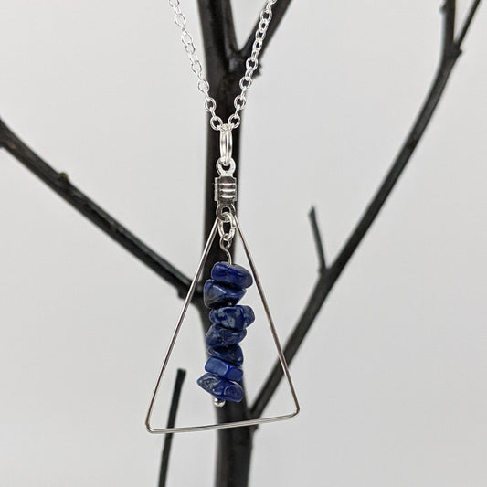 Lapis Lazuli Triangle Pendant and Dangle Earrings Set