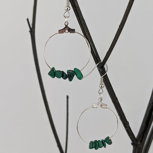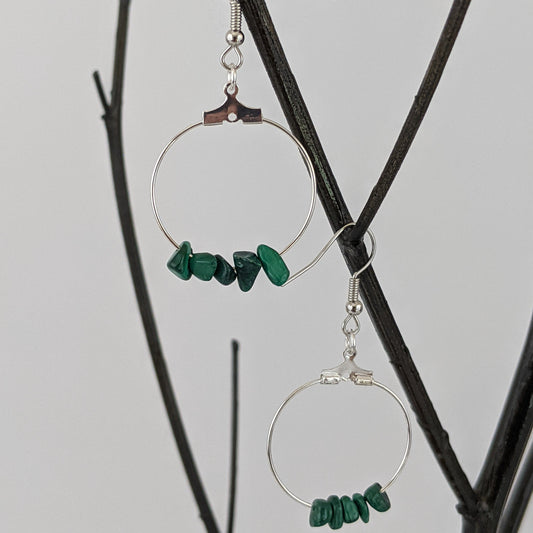 Malachite Double Circle Pendant and Circle Hoop Earrings Set