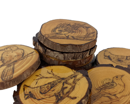 Handcrafted Wood Burned Bird Coasters