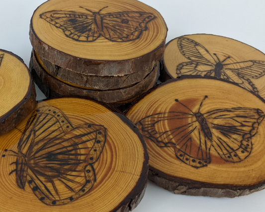 Handcrafted Wood Burned Butterfly Coasters