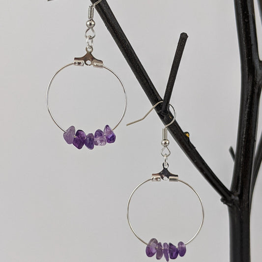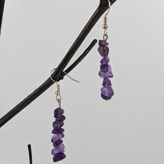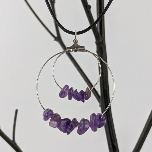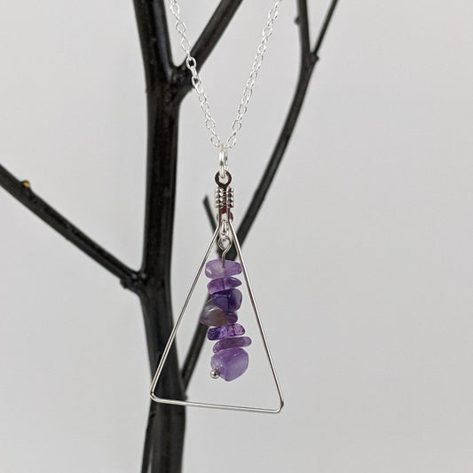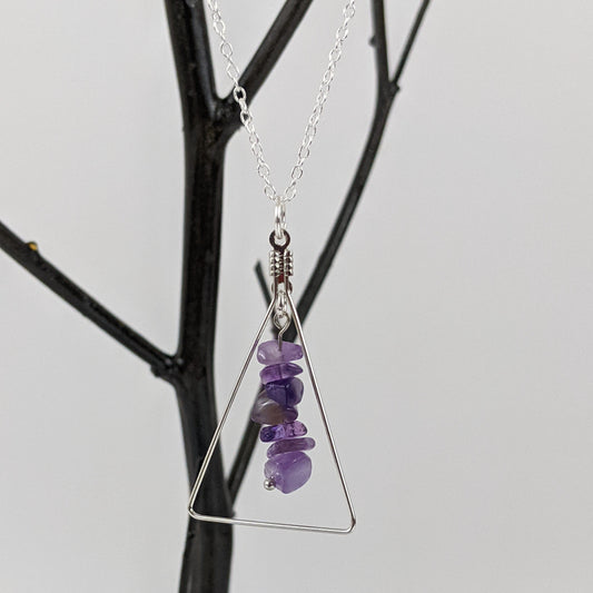 Amethyst Triangle Pendant and Dangle Earrings Set