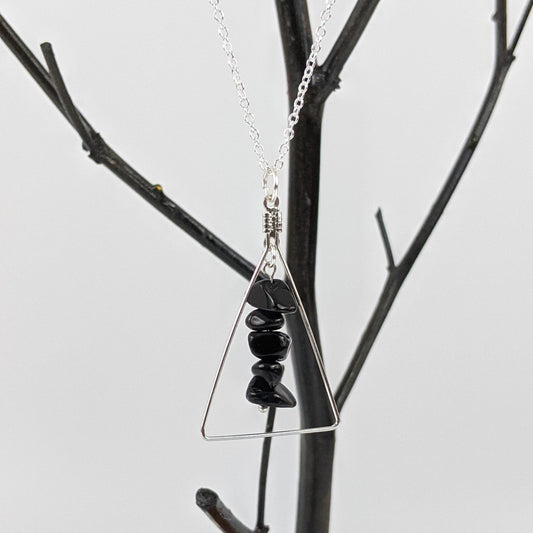 Black Agate Triangle Pendant Necklace