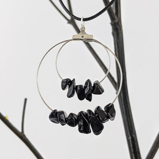 Black Agate Double Circle Pendant Necklace