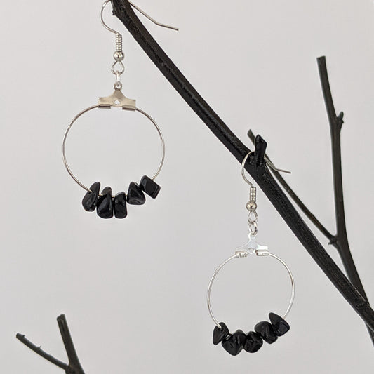 Black Agate Circle Hoop Earrings