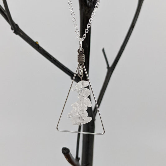 Crystal Quartz Triangle Pendant and Dangle Earrings Set