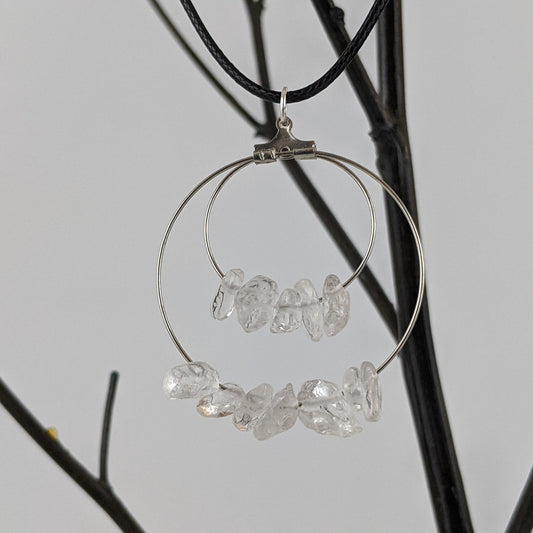 Crystal Quartz Double Circle Pendant and Circle Hoop Earrings Set